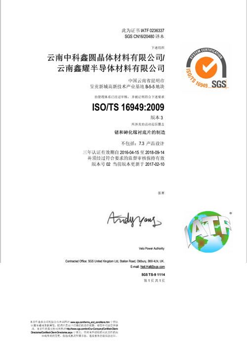 云鍺質量管理體系認證書(英文)