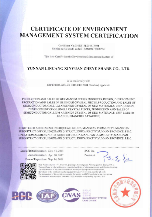 環(huán)境管理體系認(rèn)證證書(英文)