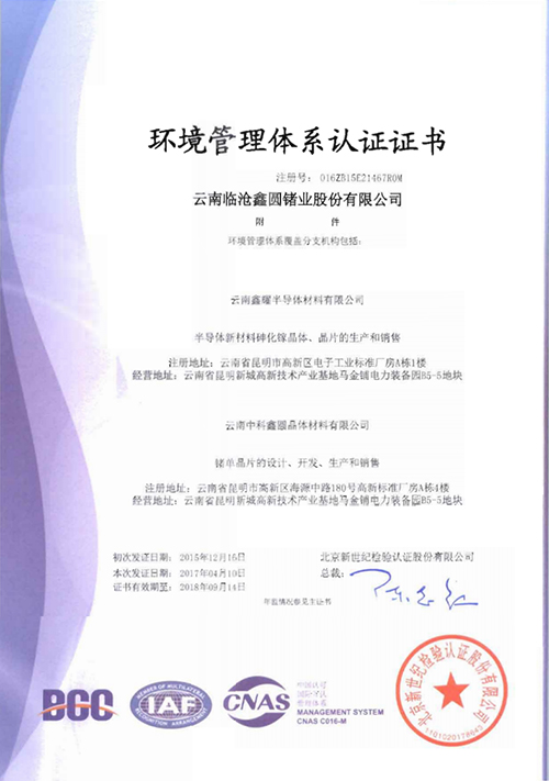 環(huán)境管理體系認(rèn)證證書(附件中文)